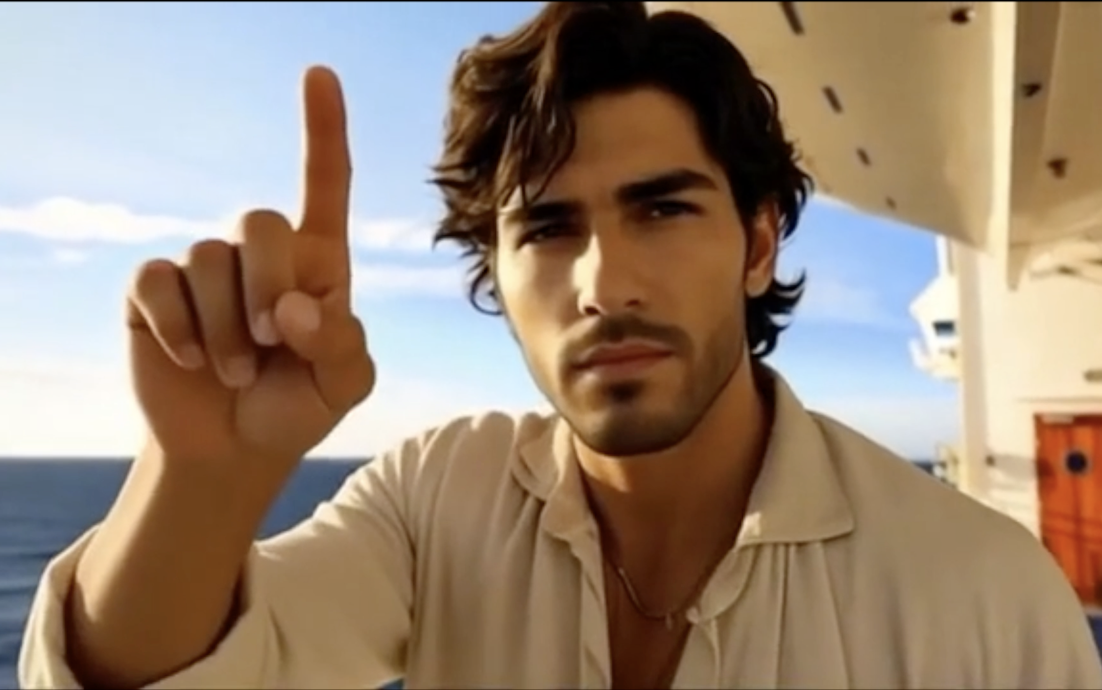 Ismael et Eliénzys levant le doigt, faisant le signe du tawhid, représentant le chiffre de l’unicité de Dieu, pillier fondamental de la foi islamique et utilisé lors de la profession de foi.