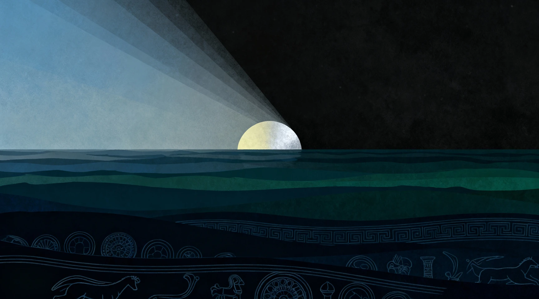 Mais cette voie occidentale ne se réduit pas à une perdition. Elle porte un paradoxe initiatique essentiel. Tawil enseigne à Eliénzys que l’Absolu, parce qu’il excède toute lumière immédiate, ne peut être approché qu’au prix d’un passage par l’ombre : « au bout du crépuscule, au plus profond de la nuit, la Lumière pourra peut-être surgir à son Orient ». Dans cette perspective, le Soleil couchant devient le seuil d’une mort symbolique, comparable à l’image du soleil sombrant dans l’océan pour renaître à l’aube, image reprise par Apollonios et Shénouti. Traverser l’Occident, c’est accepter la nuit du monde et du corps pour qu’une renaissance devienne possible. Pour Eliénzys, cette voie est donc à la fois tragique et nécessaire : elle expose l’Esprit au risque du Néant, mais elle est aussi l’unique chemin par lequel la Lumière de l’Orient intérieur peut être retrouvée, non plus comme évidence, mais comme conquête éprouvée.